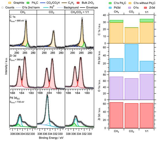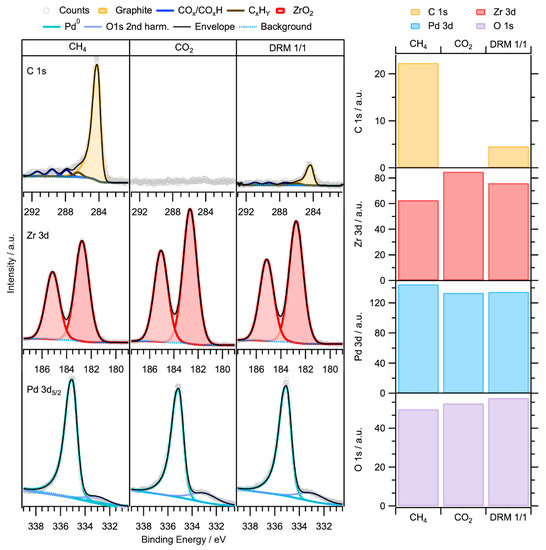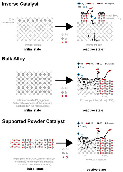 - Köpfle, N.; Mayr, L.; Lackner, P.; Schmid, M.; Schmidmair, D.; Götsch, T.; Penner, S.; Klötzer, B. Zirconium-palladium interactions during dry reforming of methane. ECS Trans. 2017, 78, 2419–2430. [Google Scholar] [CrossRef]