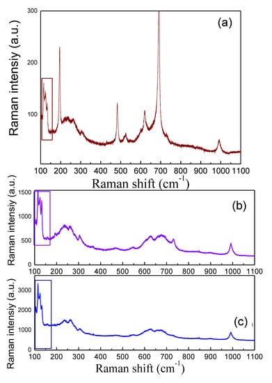It is important to note that the terminal oxygen bonds of Mo=O also appear in the range of 900–1000 cm−1 while the translational Raman bands of α-MoO3 arises below at 130 cm−1 [5,23].