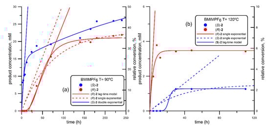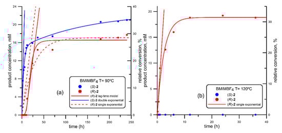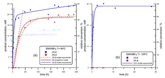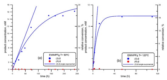 2.2. Ethanolysis of (R, S)-1 in RTILs at Different Temperatures