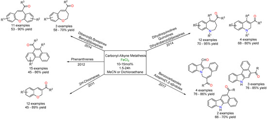 2.2. Iron-Catalyzed Carbonyl-Alkyne Metathesis