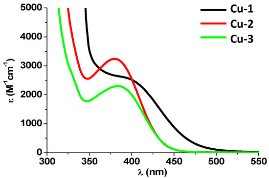 UV–visible absorption spectra of Cu-1–Cu-3 in dichloromethane. Reproduced with permission from the authors of [62]. Copyright 2014 The American Chemical Society.