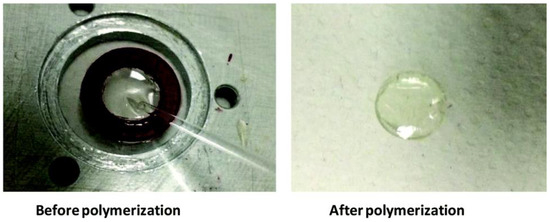 Colorless coatings obtained upon photopolymerization of a BisGMA/TEGDMA (70%/30% w/w) blend at 405 nm with the two-component Cu-30/Iod (0.5%/1% w/w) system upon photopolymerization of a thick sample (1.4 mm) under air. Reproduced with permission from the authors of [82]. Copyright 2017 The Royal Society of Chemistry.