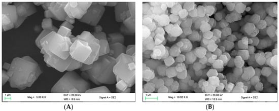 Figure 3 shows the cubic surface morphology of the prepared catalysts which is the typical morphology for the faujasite zeolitic materials. The difference in the crystal size between the two catalysts results from the different framework composition (aluminum and aluminum-free for Ga-BaY(IS) and Ga-BaY(Sil), respectively) which leads to different crystal growth rates during the synthesis [19,20].