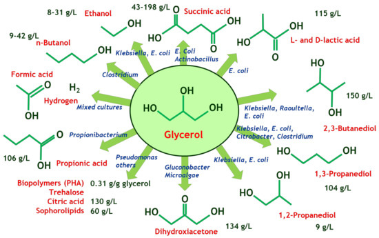 The glycerol biorefinery: microbial processes to several bioproducts.