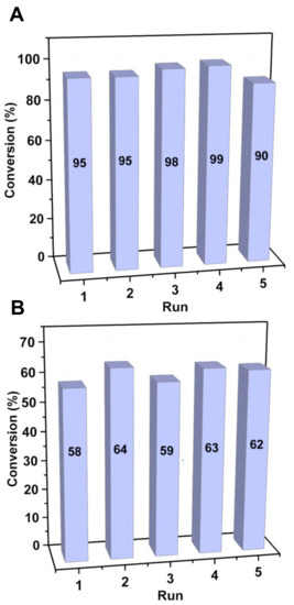 - Kralik, M.; Biffis, A. Catalysis by metal nanoparticles supported on functional organic polymers. J. Mol. Catal. A Chem. 2001, 177, 113–138. [Google Scholar] [CrossRef]