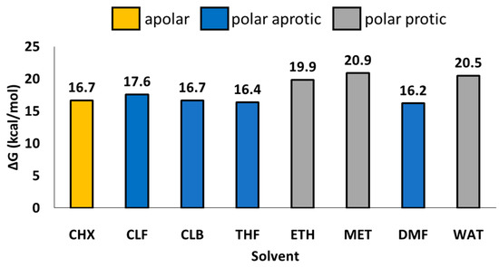 - Marenich, A.V.; Cramer, C.J.; Truhlar, D.G. Universal solvation model based on solute electron density and on a continuum model of the solvent defined by the bulk dielectric constant and atomic surface tensions. J. Phys. Chim. B 2009, 113, 6378–6396. [Google Scholar] [CrossRef]