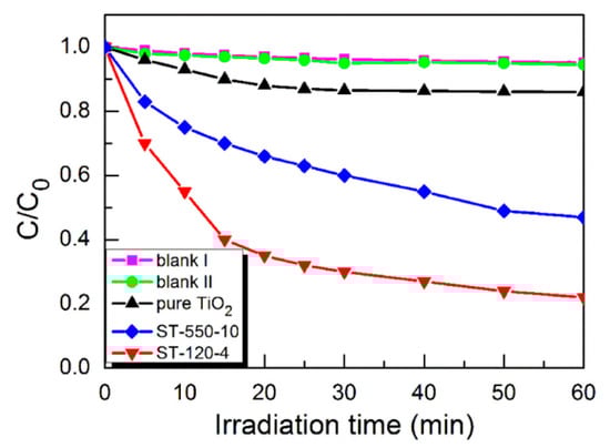 - Xiao, Y.; Sun, X.; Li, I.; Chen, J.; Zhao, S.; Jiang, C.; Yang, L.; Cheng, L.; Cao, S. Simultaneous Formation of a C/N-TiO2 Hollow Photocatalyst with Efficient Photocatalytic Performance and Recyclability. Chin. J. Catal. 2019, 40, 765–775. [Google Scholar] [CrossRef]