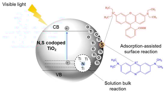 - Chung, J.; Chung, J.W.; Kwak, S.-Y. Adsorption-Assisted Photocatalytic Activity of Nitrogen and Sulfur Codoped TiO2 under Visible Light Irradiation. Phys. Chem. Chem. Phys. 2015, 17, 17279–17287. [Google Scholar] [CrossRef]