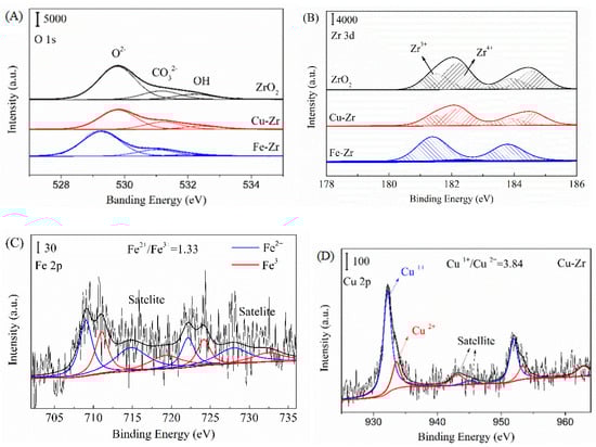 | Sample | Zr (wt%) | O (wt%) | Cu (wt%) | Fe (wt%) | O Species (%) | Zr Species (%) | |||