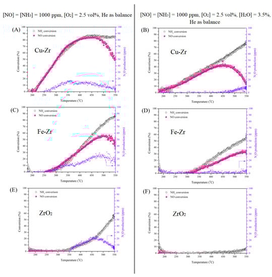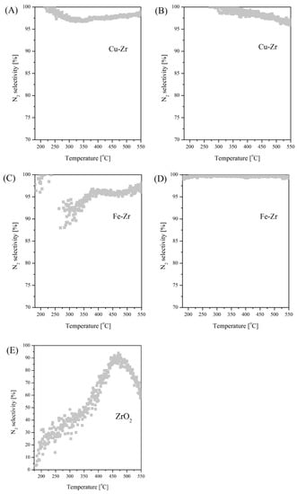 - Delahay, G.; Coq, B.; Ensuque, E.; Figuéras, F. Catalytic behaviour of Cu/ZrO2 and Cu/ZrO2(SO42−) in the reduction of nitric oxide by decane in oxygen-rich atmosphere. Catal. Lett. 1996, 39, 105–109. [Google Scholar] [CrossRef]