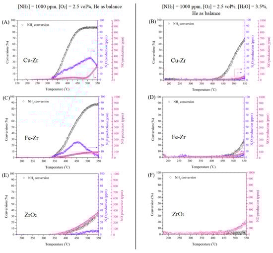 2.2.2. NH3-SCO in the Absence and Presence of Water Vapor