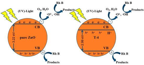 Figure 11. Mechanism analysis of pure ZnO and T-4 sample.