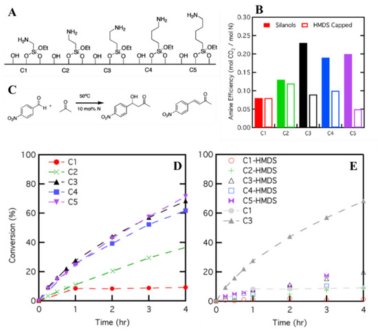- Brunelli, N.A.; Didas, S.A.; Venkatasubbaiah, K.; Jones, C.W. Tuning Cooperativity by Controlling the Linker Length of Silica-Supported Amines in Catalysis and CO2 Capture. J. Am. Chem. Soc. 2012, 134, 13950–13953. [Google Scholar] [CrossRef]