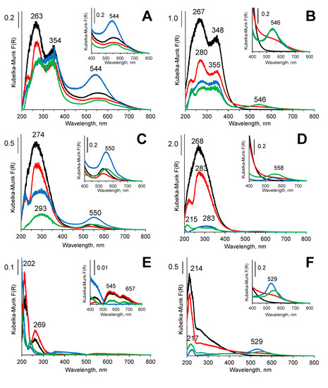 - Pestryakov, A.N.; Lunin, V.V.; Kharlanov, A.N.; Bogdanchikova, N.E.; Tuzovskaya, I.V. Electronic state of gold in supported clusters. Eur. Phys. J. D 2003, 24, 307–309. [Google Scholar] [CrossRef]
