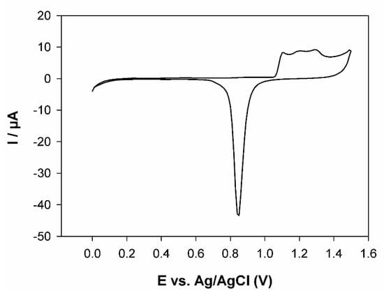 Cyclic voltammogram of the gold electrode in 0.1 M H2SO4 between 0.0 and 1.5 V vs. Ag/AgCl in 0.5 M H2SO4 at a scan rate of 0.1 V s−1.
