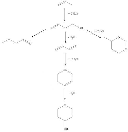 - Bedenko, S.P.; Dement’ev, K.I.; Tret’yakov, V.F.; Maksimov, A.L. The Prins reaction over heterogeneous catalysts (a Review). Pet. Chem. 2020, 60, 723–730. [Google Scholar] [CrossRef]