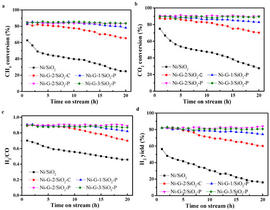 - Ren, H.; Tian, S.; Ding, S.; Huang, G.; Zhu, M.; Ma, Q.; Song, W.; Zhao, Y.; Miao, Z.; Wang, W. Carbon dioxide reforming of methane over Ni supported SiO2: Influence of the preparation method on the resulting structural properties. Catalysts 2020, 10, 795. [Google Scholar] [CrossRef]