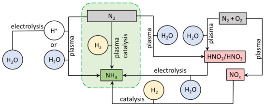 - Winter, L.R.; Chen, J.G. N2 fixation by plasma-activated processes. Joule 2021, 5, 300–315. [Google Scholar] [CrossRef]