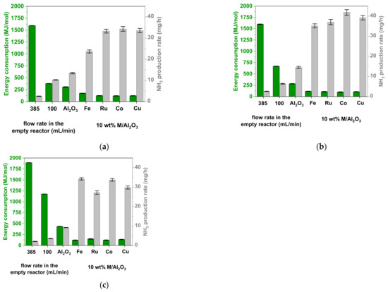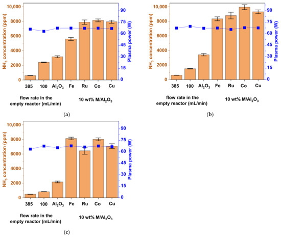 - Peng, P.; Li, Y.; Cheng, Y.; Deng, S.; Chen, P.; Ruan, R. Atmospheric pressure ammonia synthesis using non-thermal plasma assisted catalysis. Plasma Chem. Plasma Process. 2016, 36, 1201–1210. [Google Scholar] [CrossRef]
