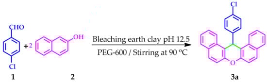 Due to stringent and increasing environmental regulations, the chemical industry needs to develop eco-compatible synthetic methodologies leading to a detailed re-examination of the most important synthetic processes [30]. Among the heterogeneous catalysts, naturally occurring clay has unique physical and chemical properties, such as selectivity, acidic/basic nature and thermal stability. Bleaching earth clay (pH 12.5) is a highly efficient heterogeneous base catalyst that has been used for several base catalyzed organic reactions [31,32,33]. The small (5 micron) particle size of the clay renders a huge surface area compared with other solid-supported catalysts.