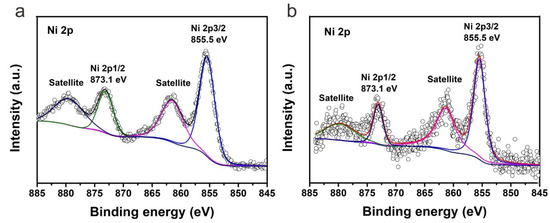 High-resolution XPS signal of Ni 2p of (a) S1-20% and (b) S2-20%.