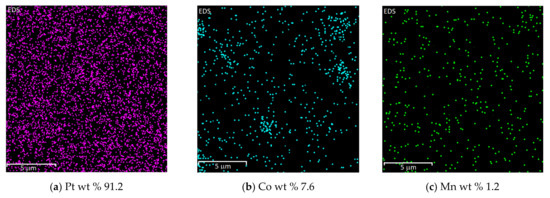 The Pt, Co, Mn, Mo, and Ru metal loadings were estimated using an ICP optical emission spectrometer Optima700DV (Perkin Elmer, Waltham, MA, USA).