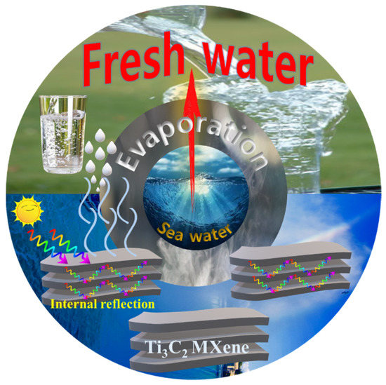 - Zhao, J.; Yang, Y.; Yang, C.; Tian, Y.; Han, Y.; Liu, J.; Yin, X.; Que, W. A hydrophobic surface enabled salt-blocking 2D Ti3C2 MXene membrane for efficient and stable solar desalination. J. Mater. Chem. A 2018, 6, 16196–16204. [Google Scholar] [CrossRef]