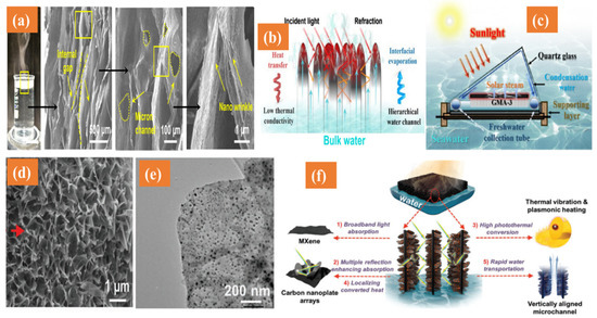 - Li, K.; Chang, T.; Li, Z.; Yang, H.; Fu, F.; Li, T.; Ho, J.S.; Chen, P. Biomimetic MXene textures with enhanced light-to-heat conversion for solar steam generation and wearable thermal management. Adv. Energy Mater. 2019, 9, 1901687. [Google Scholar] [CrossRef]