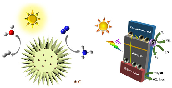 - Wang, S.Y.; Ichihara, F.; Pang, H.; Chen, H.; Ye, J.H. Nitrogen fixation reaction derived from nanostructured catalytic materials. Adv. Funct. Mater. 2018, 28, 1803309. [Google Scholar] [CrossRef]