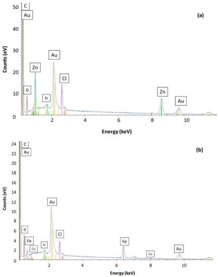 EDS spectra of (a), AC; (b), AC-Fe. A focus on the measured EDS area is presented in Figure S1.