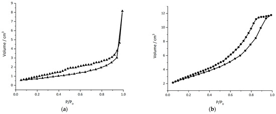A Quantachrome Quadrasorb Evo Analyser (Quantachrome, Hook, UK) was used for surface area analysis. Prior to analysis, catalysts were degassed under vacuum for 16 h at 120 °C. Surface areas of the catalysts were determined from twenty-point N2 adsorption–desorption isotherms measured at −196 °C. The Brunauer–Emmett–Teller (BET) method was used to treat the data.