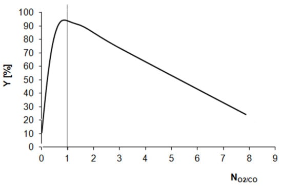 However, Figure 6 shows the CO conversion yields (Y) as a function of the ratio of NPtOx to NPts0, labeled as NO2/CO (Table 1, column 9). The presented curve shows that the catalytic activity of the Pt/Al2O3 catalyst in the CO oxidation reaction at room temperature is determined by the presence of oxygen adsorption sites. For the Pt/Al2O3 samples reduced at 500 and 600 °C, the NO2/CO ratios are very low and the catalytic activity is also low, despite NPts0 value being high. Simultaneously, when the NO2/CO ratio is clearly higher than 1, the catalytic activity is low.