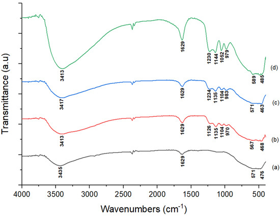 FTIR spectra of (a) TS0, (b) TS1, (c) TS2, and (d) TS3.