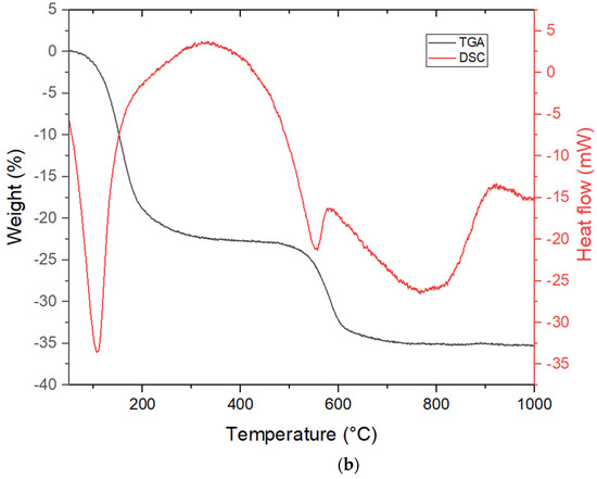 TGA/DSC thermogram of (a) TS0 and (b) TS-3-400.