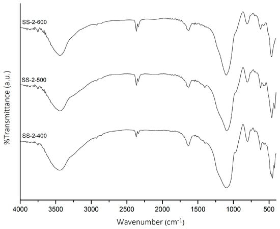 FTIR spectra of SS-2-400, SS-2-500, and SS-2-600.