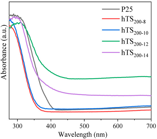 UV-vis diffuse reflectance spectroscopy (UV-DRS) spectra of the hTS200-y photocatalysts.