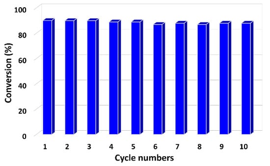 2.5. Recyclability and Stability of Catalyst