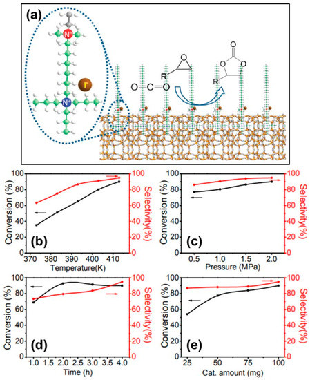 - Li, C.-G.; Xu, L.; Wu, P.; Wu, H.; He, M. Efficient cycloaddition of epoxides and carbon dioxide over novel organic–inorganic hybrid zeolite catalysts. ChemComm 2014, 50, 15764–15767. [Google Scholar] [CrossRef]