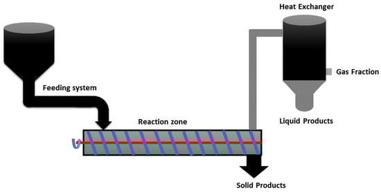 Pyrolysis is classified as a thermochemical process of energetic conversion, which occurs in an inert atmosphere, through the application of temperature rising that decomposes macromolecules [88,93]. An alternative to the high energy demand of pyrolysis, mostly to achieve and maintain the required operating temperatures, may lay in the process of autothermal pyrolysis, which is achieved by the partially exothermic combustion of the feedstock, through the controlled input of very small partial pressures of oxygen [94].