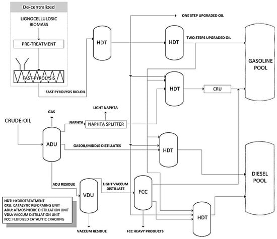 - Talmadge, M.S.; Baldwin, R.M.; Biddy, M.J.; McCormick, R.L.; Beckham, G.T.; Ferguson, G.A.; Czernik, S.; Magrini-Bair, K.A.; Foust, T.D.; Metelski, P.D.; et al. A perspective on oxygenated species in the refinery integration of pyrolysis oil. Green Chem. 2014, 16, 407–453. [Google Scholar] [CrossRef]