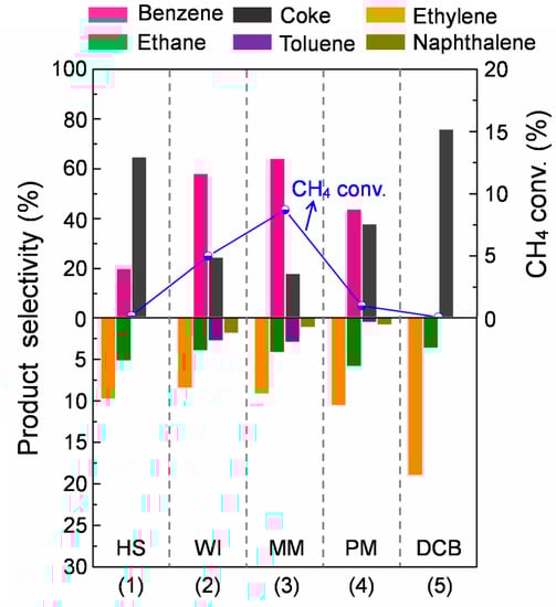 - Zhang, Y.; Jiang, H. A novel route to improve methane aromatization by using a simple composite catalyst. Chem. Commun. 2018, 54, 10343–10346. [Google Scholar] [CrossRef]