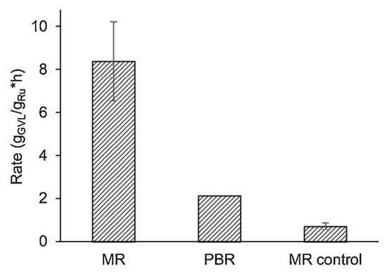 Kinetic rate of hydrogenation of levulonic acid using membrane reactors (MRs) and a packet bed reactor (PBR) [104].