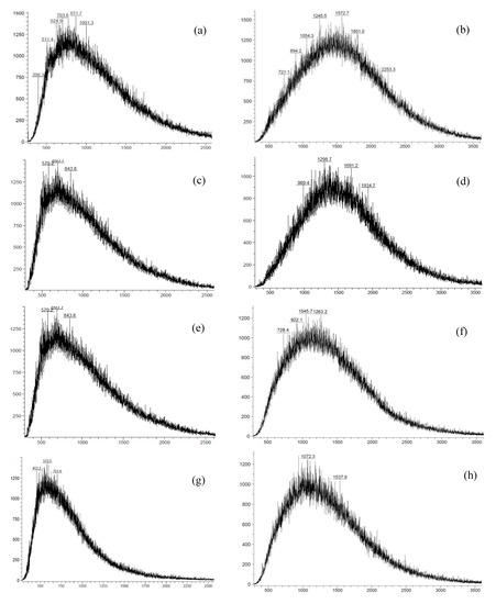 2.7. Matrix-Activated Laser Desorption/Ionization (MALDI) Analysis Results