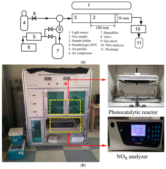 - Wang, H.; Wu, Z.; Zhao, W.; Guan, B. Photocatalytic oxidation of nitrogen oxides using TiO2 loading on woven glass fabric. Chemosphere 2007, 66, 185–190. [Google Scholar] [CrossRef]