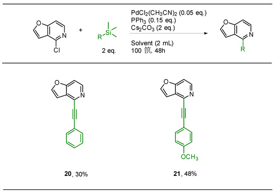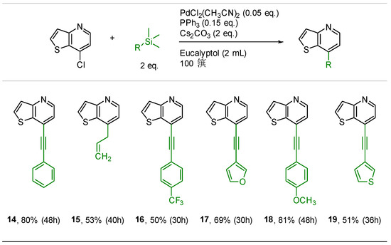 Based on our results (Table 4, Entry 11), the scope and limitations of the Hiyama coupling on 7-chlorothieno[3,2-b]pyridine were assessed using several silylacetylenes (Table 4).