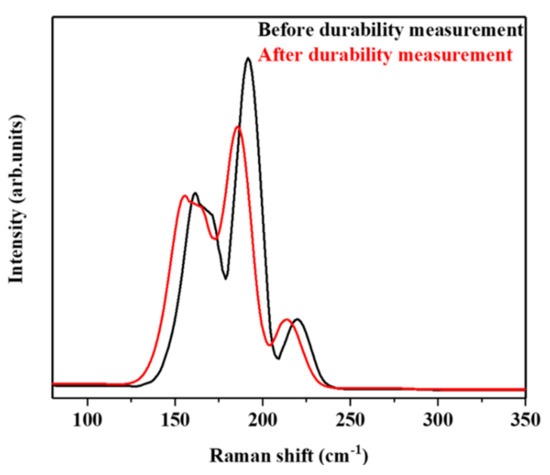 Raman measurements of the S3 nanosheet films before and after a 40-min-long durability measurement.