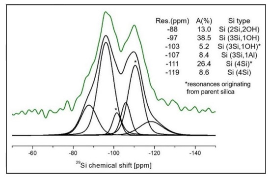 Various T-atoms sources, which are different in pre-ordering, give rise to different rapidity of dissolution and formation of anions, influencing crystal nucleation and growth kinetics, resulting foremost in different synthesis speed, and in the possibility of controlling crystal size and morphology [6,15]. Moreover, the choice of the sources depends on synthesis conditions and gel composition. Due to the specific molar composition of the zeolite (the so-called “Si/Al window” that is possible to have in the obtained structure), every structure has a preferential stoichiometric ratio of components. However, the resulting Si/Al in the obtained product does not always correspond to the molar composition of the synthesis gel.