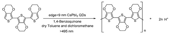 Photocatalytic polymerization reaction of 2,2′,5′,2″-ter-3,4-ethylenedioxythiophene using CsPbI3 QDs.