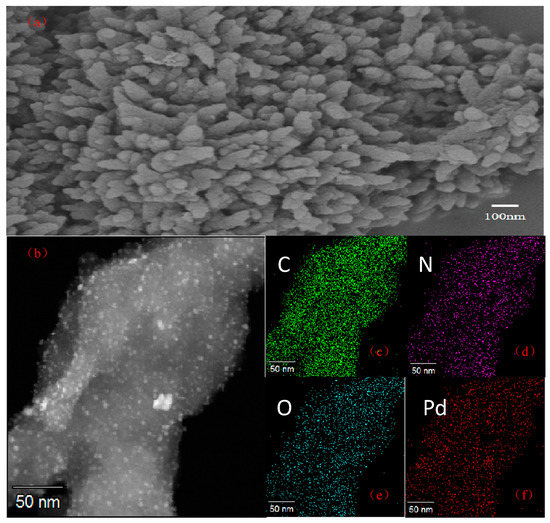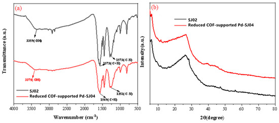 3.2.3. Synthesis of the Reduced COF-Supported Pd Catalyst