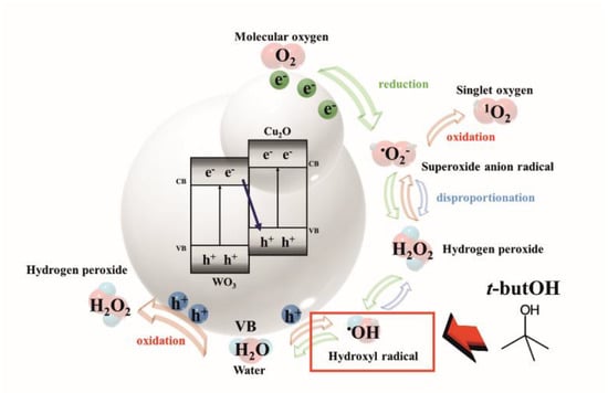 - Wei, S.; Ma, Y.; Chen, Y.; Liu, L.; Liu, Y.; Shao, Z. Fabrication of WO3/Cu2O composite films and their photocatalytic activity. J. Hazard. Mater. 2011, 194, 243–249. [Google Scholar] [CrossRef]